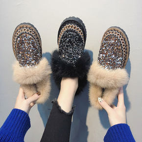 水钻亮片毛毛鞋女冬外穿加绒百搭豆豆鞋2021新款厚...