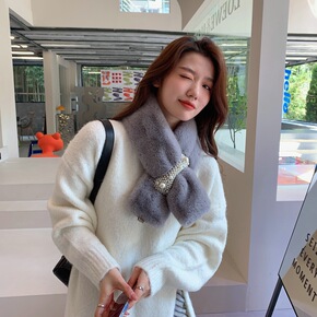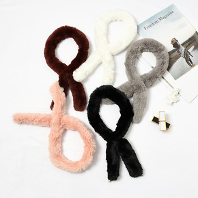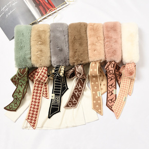 韩版獭兔毛窄版围巾女秋冬季学生百搭原宿毛绒仿皮草围...
