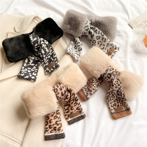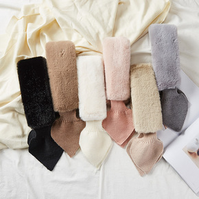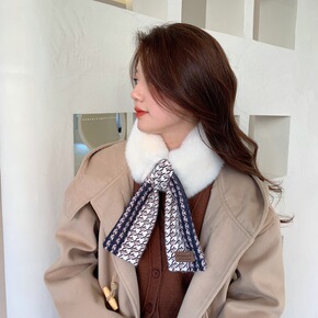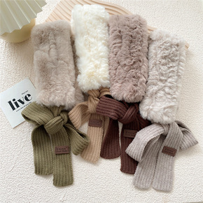 针织拼接围脖冬季时尚学生女保暖加厚仿兔毛少女感交叉...