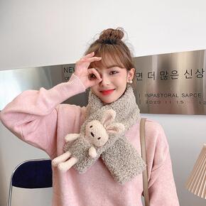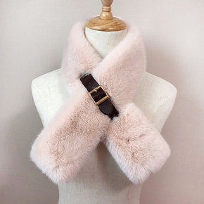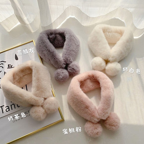 仿獭兔毛毛绒小围巾女韩版可爱百搭秋冬季交叉围脖网红...
