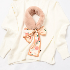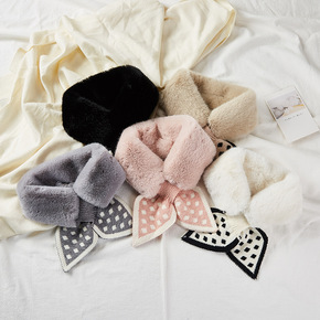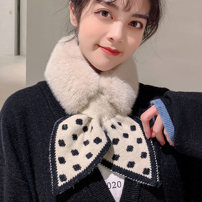 韩国东大门圆点桃心毛领围脖针织拼接毛绒围脖保暖装饰...