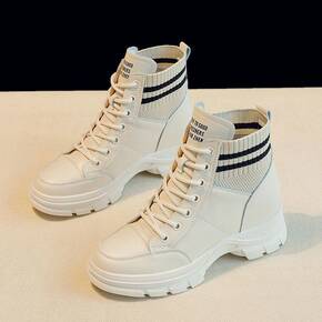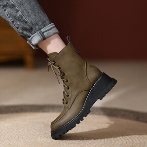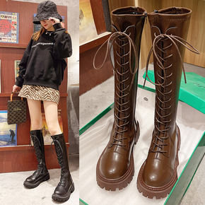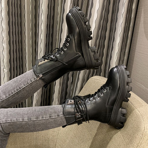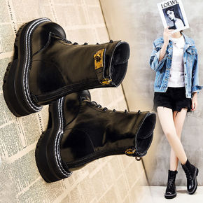 2021年秋冬新款短靴厚底圆头系带中筒靴时尚个性加...