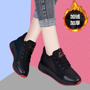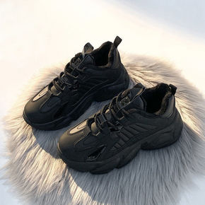 黑色老爹鞋女士秋冬加绒保暖春季单里显脚小增高显瘦软...