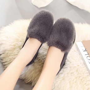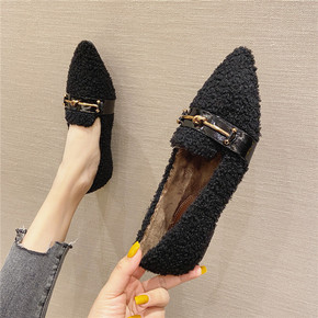 2022年春季新品单鞋女尖头毛毛鞋绒毛平底鞋一脚蹬...