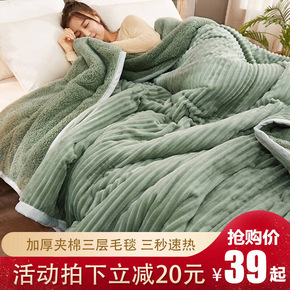 加厚三层毛毯被子羊羔绒铺床上用珊瑚绒床单冬季沙发毯...