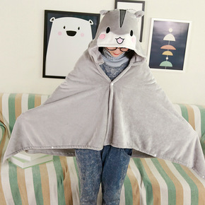 卡通动漫灰色仓鼠宅人披肩披风斗篷大号连帽抱毯空调毯...