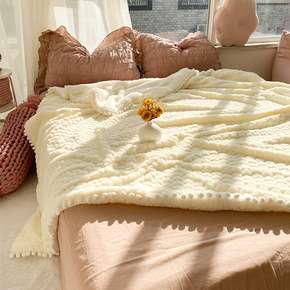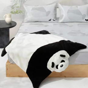 新款家居盖毯 熊猫嘭嘭毯子午睡毯 亲肤细腻仿兔绒空...