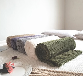 初秋冬款~简约菱形麻花纯色软绵绵亲肤休闲空调毯沙发...