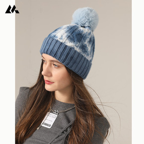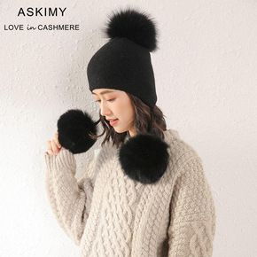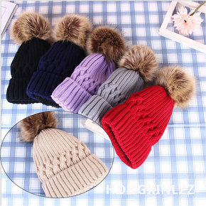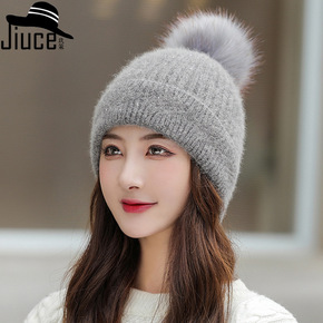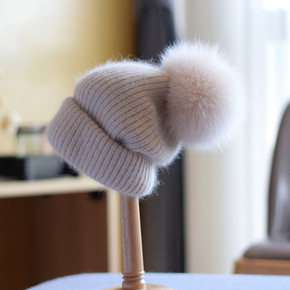 韩国狐狸毛球保暖卷边针织帽秋冬季兔毛百搭韩国护耳绞...
