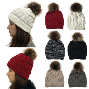 内蒙古厂家直供女士新款纯羊绒针织帽 真毛球羊绒帽...