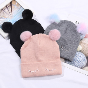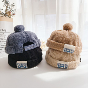 秋南 儿童帽子秋冬新款韩版貉子毛球纯色地瓜帽宝宝加...