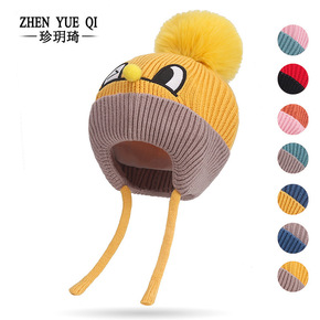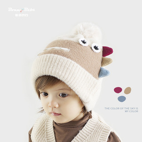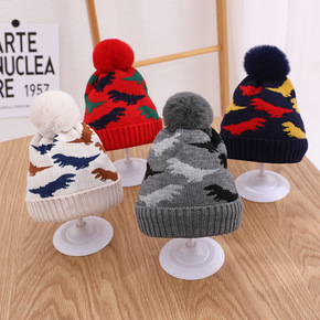 儿童毛线帽子秋冬新款韩版恐龙大毛球小童针织帽纯棉内...