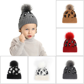 新款冬季现货海马毛球可爱豹纹欧美儿童针织防风保暖套...