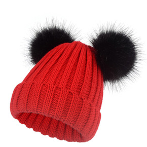 新款儿童真貉子毛球针织帽宝宝高档质量套头无檐保暖冬...