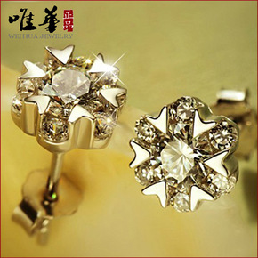 唯华时尚甜美菊花韩国耳饰品 圣诞雪菊花水晶耳钉耳环...