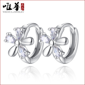 唯华 韩国时尚米字花耳环气质 女车花经典镀银饰品礼...