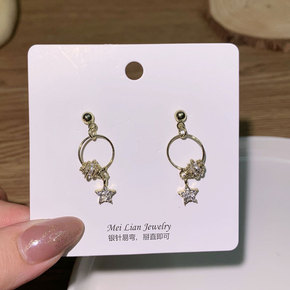 唯华 新品镂空五星角耳钉女韩版气质约简耳环锆石镀银...