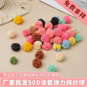 现货韩版弹力网纱花球多色蕾丝花纱球网布毛球发饰di...