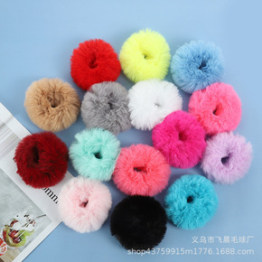 韩国糖果色毛绒发圈仿兔毛软妹双马尾头绳新款毛毛发饰...