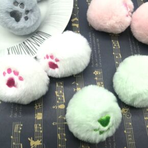 绣花卡通猫爪熊爪图案仿兔毛毛球服饰头饰鞋帽围巾配饰...