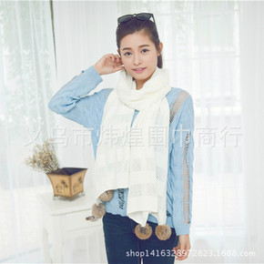 ins韩国网红气质纯色菠萝格针织围巾 温柔保暖厚实...