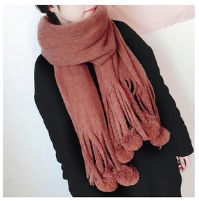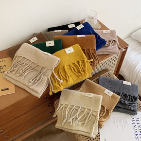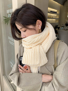 日系针织围巾女冬季高级感保暖长款加厚纯色百搭学生毛...