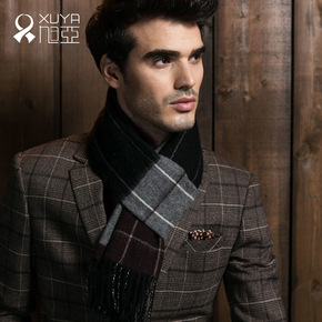 旭亚 纯羊毛20男士围巾秋冬季加厚保暖纯色商务围巾...