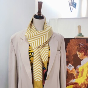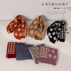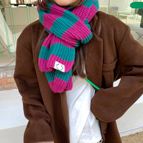 D韩版秋冬现货经典笑脸条纹横纹毛线针织保暖围巾清新...
