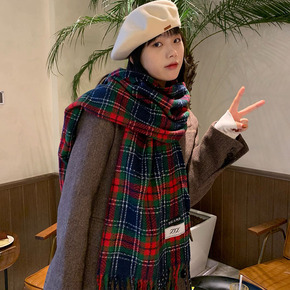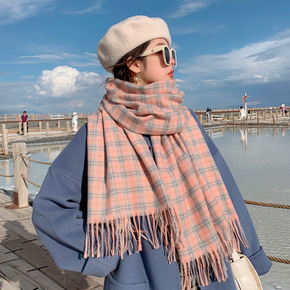 围巾女秋冬男女格子围巾韩版学生少女复古长款保暖毛线...