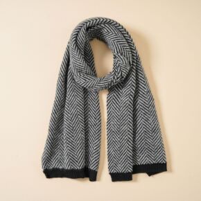 针织毛线围巾女秋冬季黑白色韩版百搭学生春秋仿羊绒围...