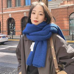 克莱因蓝韩国egg围巾针织手工流苏纯色围巾女秋冬i...