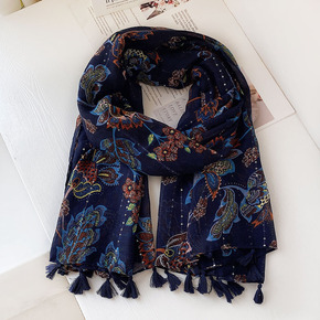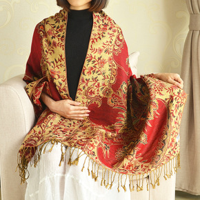 头巾提花腰果围巾女保暖 民族风金丝空调披肩女老K围...
