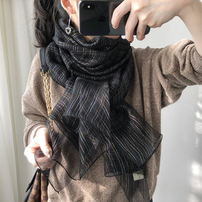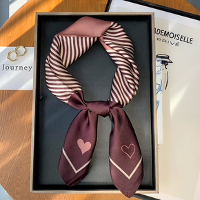 复古法式小方巾女韩国东大门条纹围巾春秋季减龄百搭领...