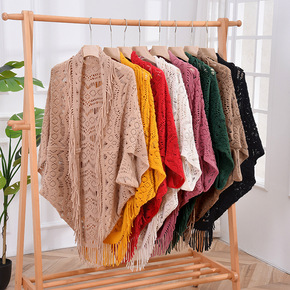 毛衣女2021新款中长款毛线衣针织衫流苏披肩秋冬斗...