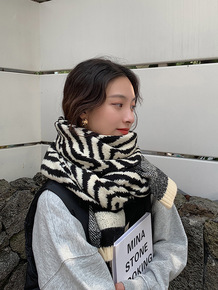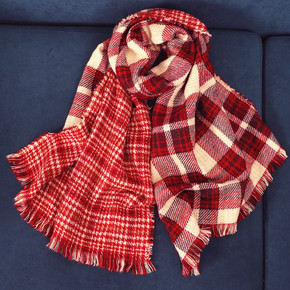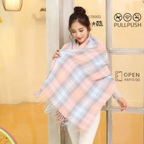 围巾女冬季ins千鸟格格子韩版披肩针织毛线学生围脖...