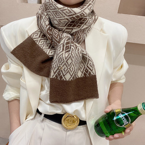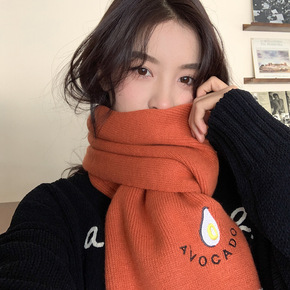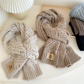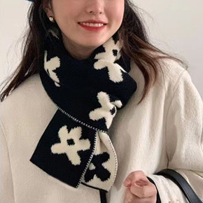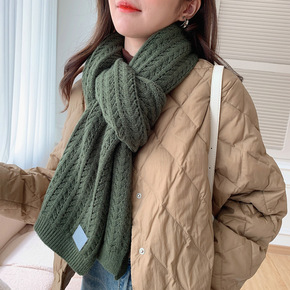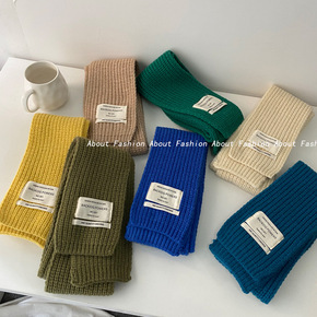 日系百搭贴布毛线围巾女冬天长款加厚保暖情侣学生休闲...