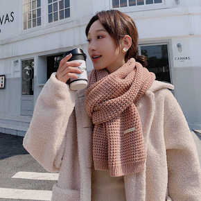 2021秋冬新款韩版纯色针织毛线围巾装饰冬季学生保...