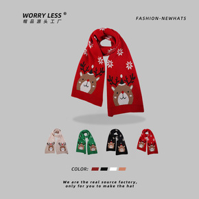 圣诞节礼物围巾女批发冬季新款小鹿针织围脖男学生情侣...