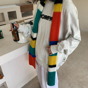 韩版学生原宿针织小围巾女冬季秋天彩虹长巾百搭保暖毛...