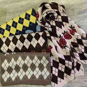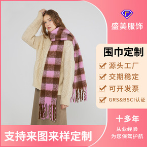 2022新款针织格子围巾女秋冬季保暖加厚提花草莓复...