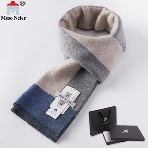 2022新款高档100%纯羊毛男士围巾秋冬季中青年...
