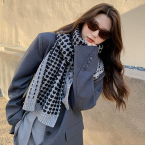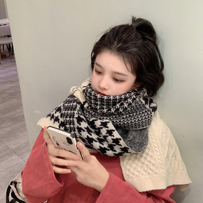 千鸟格子围巾女冬季韩版百搭学生秋冬加厚保暖针织毛线...