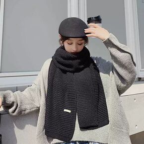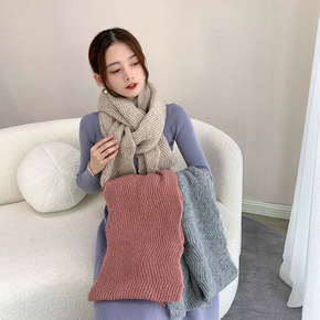 韩国同步2022年秋冬新款针织围巾ins风纯色时髦...