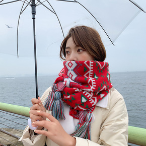 三角围巾围脖披肩两用毛线针织保暖秋冬季流苏小坎肩长...