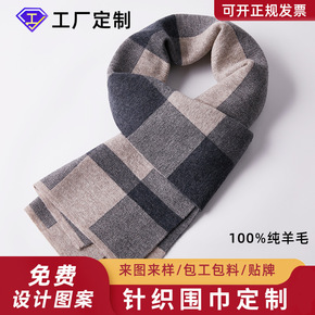 2022新款纯羊毛围巾男秋冬提花针织围巾男士保暖围...