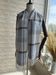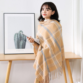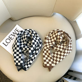 山羊绒材质经典格子水波纹路柔软围巾女士保暖披肩...