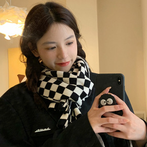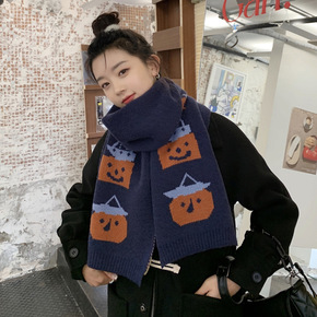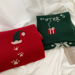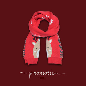 圣诞好物~围巾女ins风红色保暖日系卡通毛线保暖仿...
