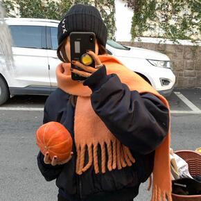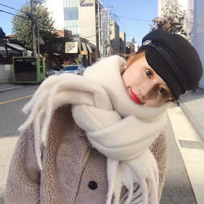 2021秋冬加厚新款流苏仿羊绒围巾韩版女士水波纹细...
