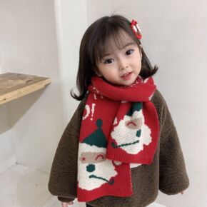 冬季圣诞儿童围巾保暖针织宝宝围脖韩版圣诞男童女童披...