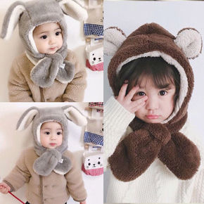 儿童帽子女宝宝护耳帽女童男童帽秋冬婴幼儿围巾一体可...